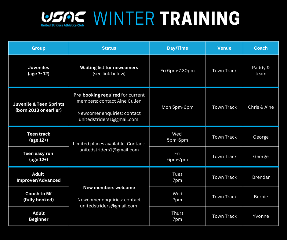 This group includes competitive and recreational athletes training across a wide range of events — from track and cross country to road races and marathons. Some members compete for medals, others aim to improve PBs, and many simply enjoy the structure and challenge of training. Racing is encouraged but entirely optional.